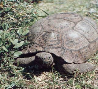 A very large tortoise at the Cape of Good Hope Nature Reserve;